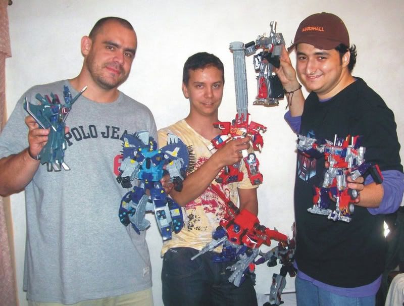 juanferprime Soldado Autobot / Decepticon | #31•• Buenos mis muchachos nos hemos reunimos el 16 de marzo y aquí algunas fotitos como objetivo de nuestra reunión, comparar los tfs bw de hasbro y takara y presentar un nuevo camarada de la movie. Por supuesto Sergio te olvidas de alguien importantísimo de Medallo, Manuel Pulgarían a quien debo en gran parte mi fanatismo y mi colección... en pocas palabras: mi vida se parde en dos antes y después de conocer a Manu... les dejo fotitos... De izquierda a derecha: Julian, Juanfer y Manuel