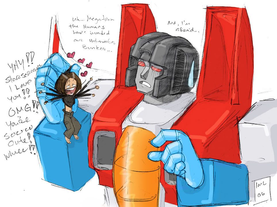 FireFenix52 Headmaster Autobot / Decepticon | #108• wow!!! los dibujos de markerguru son impresionantes! O.O Starscream y Arcee se ven muy bien! creo que esta imagen tambien es de él: