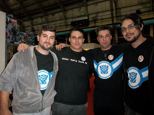 Barkhan Micromaster | #1• Ya pasó un buen tiempo en relación al evento en el que participamos como grupo. Tanto tiempo que pueden estar tentados a preguntarse si merece la pena escribir y destinar unas cuántas lineas a mostrar y expresarme en torno a esto... bueno, es mi blog no? :P La FanSci es un evento de "Fantasía, Animé y Ciencia Ficción" que se realiza dos veces por año desde hace 3 años. Como muchos saben, nuestro grupo es uno joven aún, en pleno desarrollo, y gracias a que conocimos al organizador es que se nos abrieron las puertas a participar dentro del marco de su séptima edición.! Tuvimos algunas reuniones e incluso realizamos una colecta de dinero para poder disponer de capital para impresos y movilidad y nos embarcamos casi como completos desconocidos en esta aventura nueva e intimidante para nosotros. Nuestras sensaciones eran claras y no se necesitaban muchas palabras para saber que todos pensábamos lo mismo... se mezclaba el entusiasmo con el perfecto desconocimiento (incluso entre muchos de nosotros) pero se palpitaban las ganas de remar todos hacia el mismo lado. Realizamos una reunión previa para determinar y desligar determinadas responsabilidades y definir el criterio que le daríamos a la expo del grupo, quien llevaría qué, quién imprimiría y cuánto, etc, etc, etc. Terminamos los preparativos y rumbeamos para el evento un sábado bien temprano (de hecho fuimos el primer stand en llegar, ansiosos nosotros?). Convalidamos en llevar dos formatos de folletería que un amigo gentilmente nos regaló: volantes informativos con links útiles del grupo y reviewers; y un tríptico contando cosas acerca de la franquicia de Transformers. Quedaron bien bonitos y repartimos unos cuantos. Destacar la participación deSebaque, desde un rol de espectador, nos regaló 100 pines para repartir al público (con el logo del A.C.T.A.) y como 15 pines especiales para los que trabajábamos el stand... Y a Christian deToysman, figuras de acción, quien nos prestó una vitrina pecera para exponer y nos hizo las veces de nexo entre algunos chicos que tenían que llevar o traer cosas permitiendo dejárselas para que retiraran por su local... es un obligado. Gracias a ellos terminamos redondeando un gran evento.
