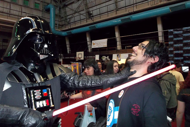 El otro apartado de los obligados es mencionar la historia de Mariano que se vino desde su Rosario, Santa Fe, pura y exclusivamente para estar en la FanSci con nosotros y compartir este momento importante. Un gran viaje para un gran momento y que, seguramente, le rinda tributo en una gran anécdota para contar en el futuro. En este apartado es de destacar que también sirvió de motor para concoer a muchos chicos con los que charlaba a diario por Facebook o a través del grupo, pero que no tenía el gusto de conocer, comoAriel y Cristian; y también de paso conocer grupos de gran envergadura comoStar Fans o Star Wars Fanáticos de Argentina.