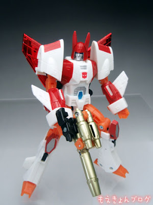 mdverde Alto Consejo Cybertroniano | #437• La tienda japonesa Ganbo Store ha publicado muchas imágenes de la figura exclusiva Strafe Henkei, que es exclusiva de una promoción en Japón y como se sabe, es un repintado de Cyclonus Henkei. En realidad no puedo dejar de ver a Cyclonus en esa figura, me parece que el molde no era apropiado para un repintado. La verdad se me parece poco a Strafe y me parece un Cyclonus pintado blanco, rojo y anaranjado. Visto en: Allspark.com |