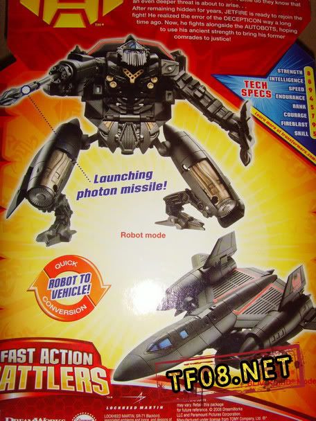 StarscreamNEO Alto Consejo Cybertroniano | #275• Por lo menos se puede deducir que Jetfire también vuela (o salta propulsandose) en modo robot con las toberas de sus turbinas en las rodillas. Además está armado con una gatling. La foto que pusieron arriba del Megatron pequeñito en modo tanque tiene la torreta alrevés, al parecer Megatron reflejará a través de su pecho el poder que le quedó del cubo y está por fin armado con su cañón de fusión.