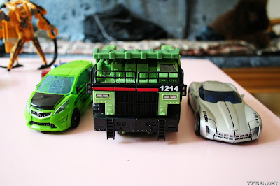 DarkEyesNEO Actionmaster Autobot / Decepticon | #30•• Finalmente han aparecido imágenes del tal Long Haul, particularmente encuentro sentimientos encontrados con respecto a esta figura, primero me parece genial el tono de verde que han utilizado, por razones obvias, el modo bot cumple muy bien, muy simétrico y muy al estilo antiguo, me parece fantastico el tamaño del modo alterno pero la pega que le veo es que para ese tamaño debería de tener más detalle y un mejor decorado en cuanto a pintura. Otro punto flaco es que esos camiones tienen ese enorme tamaño porq son de carga, de mucha carga, y en su parte posterior practicamente no dejan espacio para eso, con lo cual se cargan la idea del camión Mención especial al arreglo de las manos en el modo alterno, logrando hacer que una solución tan simple, tan a la vista pues no resalte, simplemente por el diseño de los dedos y de la mano en su totalidad, bravo! ![]() ![]()