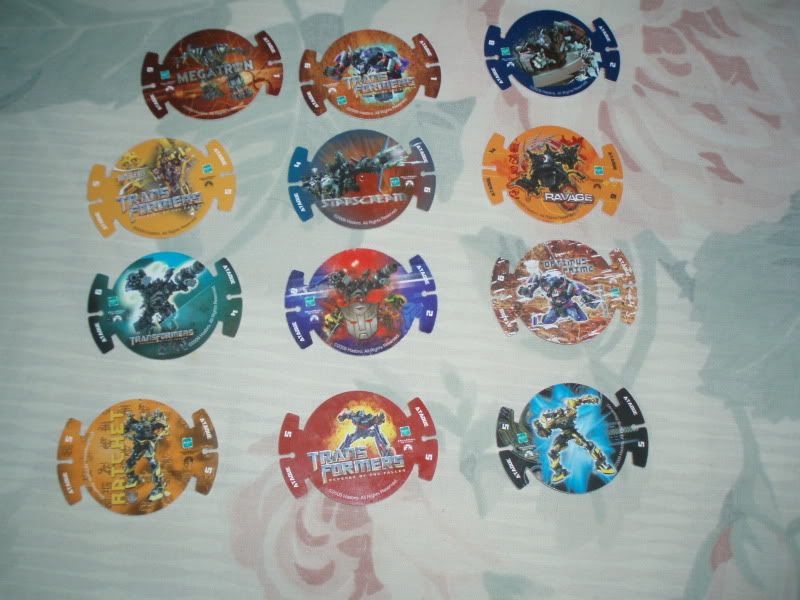 StarscreamNEO Alto Consejo Cybertroniano | #148• Escrito originalmente por Choryujin no exactamente figuras, pero en mi pais comenzaron a vender estos tazos de ROTF, se juega en base a los ataques que tienen marcados y se conectan para catapultarlos (tazos voladores), son de calidad mala, ya que ya se le esta comenzando a ir la pinturas a algunos apenas sacandolos de las fundas, actualmente tengo 12 de no se cuantos xD, supongo que de 50