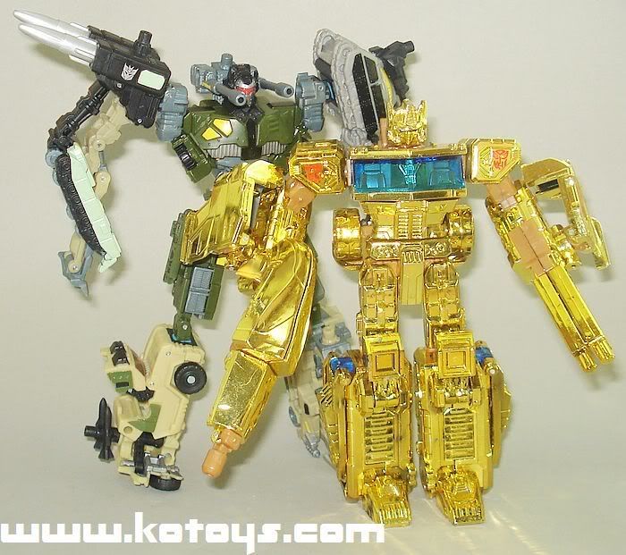 StarscreamNEO Alto Consejo Cybertroniano | #132• Con los hombros así de simétricos y cuadrados ahora si que se ve feito el pobre. Tal vez si los vemos con personalidad en alguna serie ganen algo más pero así por si solos no mucho... ese Bruticus además se ve muy escuálido y poco poderoso. Optimus dorado se parece a las copias KO que vienen bañadas en cromado para ahorrarse la diversidad de colores. en fin...