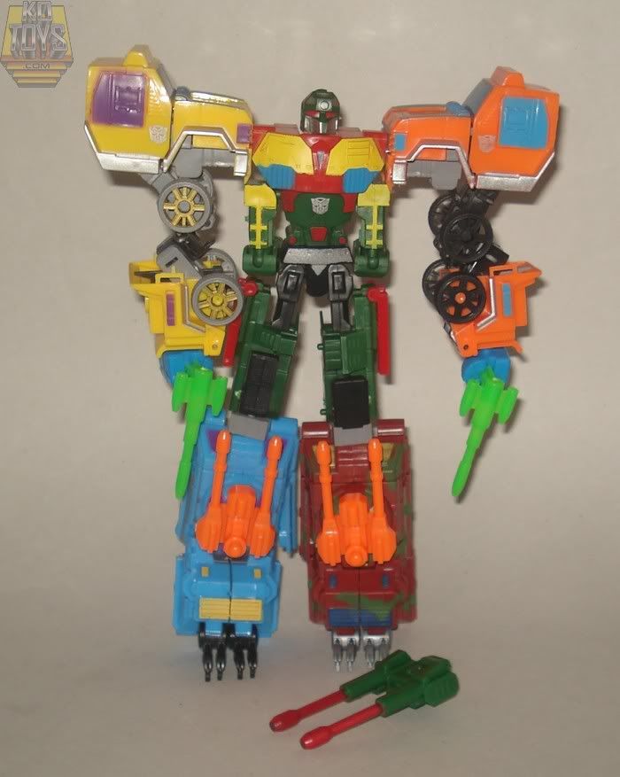 Mas fotos del KO PCC y de otros KO's mas como Mini-Seekers http://www.kotoys.com/forum/index.php?topic=1245.0 Aqui les dejo mi primer post de KO's del 2011: Robo-Dino Bronto Bot, la figura es mediocre, totalmente floja e inesable, la pieza amarilla que va en la espalda del dinosaurio es un arma para el modo robot, pero el agujero que le pusieron en las manos es mas chico que el mango del arma.
