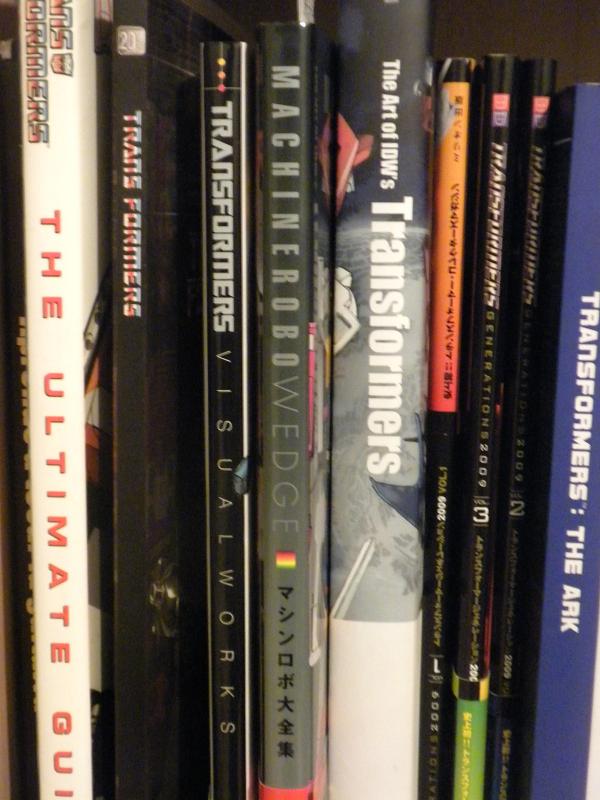 Detallo por si no se ve bien: 1. The Ultimate Guide de Simon Furman (Totalmente dispensable a mi criterio) 2. La guia de Generations (en chino pero para lo que se de Japones....) 3. Transformers Visual Works (excelente!!!) 4. Machine Robo Wedge (una especie de Generations pero de Gobots) 5. The art de IDW Transformers. (Genial, con algunos problemas pero muy recomendable!) 6. Los tres tomos de Generations 2009 (practicamente un material complementario al generations anterior) 7. El primer tomo de The Ark de Jim Sorensson (Excelente) A parte de ello estoy esperando los dos tomos de Allspark de Animated y los dos tomos de "The incredible Change Bots" (Una especie de parodia a Transformers de la cual he visto algunas viñetas y me gusto mucho). Mis dudas son las siguientes: ¿Que libros podrian aconsejar para un coleccionista que puedan faltar en la coleccion anterior? Comics excluidos. ¿Entre el primer libro de Generations y los tres tomos del 2009 no hay nada? No hay nada con ese estilo para Armada-Energon-Cybertron y las series de Beast Wars? http://www.blogtransformers.com/ |