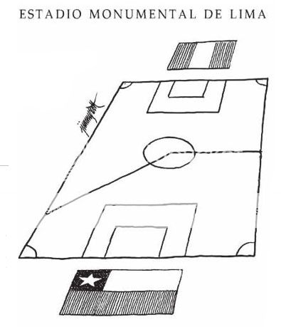 PD: Para los que no comprendan el chiste gräfico se trata de que Perú pretende cambiar un límite marítimo historico con Chile que sigue las paralelas del globo terráqueo a una diagonal igual a la que se puede apreciar en la chancha de football, llevando inclusive el caso a la Haya