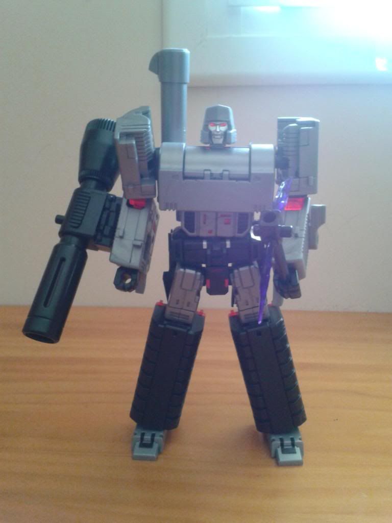 rosevanhelsing Actionmaster Autobot / Decepticon | #12•• REVIEW HEGEMON (ALIAS MEGATRON) Aquí os presento una nueva review de un producto de tercera compañia, Hegemon de Toy World, que viene a homenajearnos a una figura muy importante en el mundo Transformers como es el líder Decepticon Megatron. Antecedentes Megatron es, por no decir el más famoso, uno de los principal antagonista de la mayoria de series y comics, ya ha tenido varias representaciones, (una o varias por cada serie). El primero fue el Megatron G1, del cual ha salido una decena de ediciones y que bueno, sea blanco o negro, cromado o solo de plástico, es Megatron. Un juguete que para su tiempo estuvo muy bien hecho aunque su modo robot es el más sufrido. En este modo, sufre de poca movilidad. Se mueve los brazos y las piernas pero nada más. Ahí se queda. En modo alterno, queda muy pero que muy bien, siendo una gran representación de la pistola Alemana Walter P-38. Sus accesorios como la mira telescópica, posa brazos y el silenciador, le hacían una presencia inmejorable y hasta ahora, no ha habido un molde de Megatron capaz de igualarse a la perfección en modo arma. Un molde algo complicado de transformar para su época. Por otro lado, muchos años después salió la versión Masterpiece. Una gran figura que intenta ser fiel a la figura G1, con la salvedad de la posición del gatillo de la pistola. No obstante, es una figura muy grande y de transformación muy complicada, algunos dolores de cabeza debe de haber causado. Casi se puede decir que hay que ser muy meticuloso con esta figura, ya que contiene piezas muy pequeñas, puede ser frágil debido a eso precisamente y si algo no encaja perfectamente desde el comienzo de la transformación, la podéis pasar muy canutas es un puzle en toda regla. Después es un tanto amorfo; demasiado grande en modo pistola (algo que es normal, en los juguetes no tenemos el desplazamiento de masa típico de Megatron en los dibujos) y en modo robot, esas piernas son un tanto odiosas, le queda el cañón en el brazo demasiado grande y además, tiene la desgracia de que al poco tiempo de tenerlo fuera de la caja, se le deteriora el cromado de los pies y algunos tornillos se oxidan (por lo menos, ocurría en los primeros que salieron, desconozco si el problema se solucionó en alguna remesa), así que la manera de conservar la figura, es NO sacarla de la caja. Más tarde, aparecerían algunos moldes entre las líneas Classics y todo lo que eso conlleva. El primer homenaje como classic, fue el Megatron de clase Voyager , que pese a transformarse en pistola, esta parece más bien una pistola de agua de juguete tipo Nerf (sobre todo en la versión Hasbro con esos colores tan llamativos), Además, nos encontramos con la clara alergia de los yankees a juguetes que parezcan armas de verdad (de ahí el famoso taponcito naranja). No obstante, la versión Takara tiene unos colores mucho más sobrios. La transformación de este molde hace que Megatron lleve una especie de alas en modo bot. No obstante, pese a no ser muy cartoon accurate, es una buena figura y de transformación un tanto entretenida aunque no tan difícil como los moldes anteriormente citados. Años más tarde, Takara re-editaría de nuevo el molde en la línea United/Henkei , con pequeños cambios de poca importancia. También saldría otros moldes como Megatron Classic en modo tanque (homenajeando a la versión G2) e incluso en la línea Reveal the Shield, hubo una versión Legend del personaje G1. Lo que nos lleva a las terceras compañías donde de momento, solo ha habido un molde homenajeando al personaje G1 y que lo ha convertido hasta la fecha, en el mejor molde (omitiendo algunos fallos que tiene) de Megatron para encajar en Classics *Introducción con la colaboración de Gandalf EMPAQUE E INSTRUCCIONES El empaque es sencillo, de cartón y plástico con ventana transparente para ver la figura en la parte delantera. En la parte trasera vemos imágenes por delante y detrás de la figura ( con poses realistas y no exageradas), y unos cuadros con los accesorios que lleva la figura. Por dentro tenemos dos blísters de plástico. Uno sujeta la figura con alambres de plástico, ( lo gracioso es que este Megatron lleva un incluido el famoso ¡taponcito naranja!, afortunadamente este es de quita y pon. El otro blíster que lleva tapa contiene los accesorios de la figura. Las instrucciones son más o menos claras, aunque es posible liarse bastante a la hora de hacer según qué pasos de transformación, pero con paciencia, puedes transformar el bicho siguiéndolas. ( Al menos yo lo conseguí)