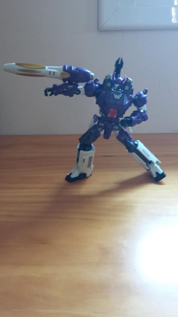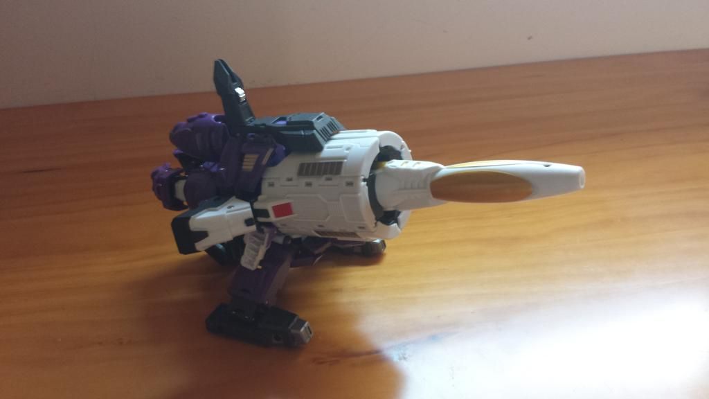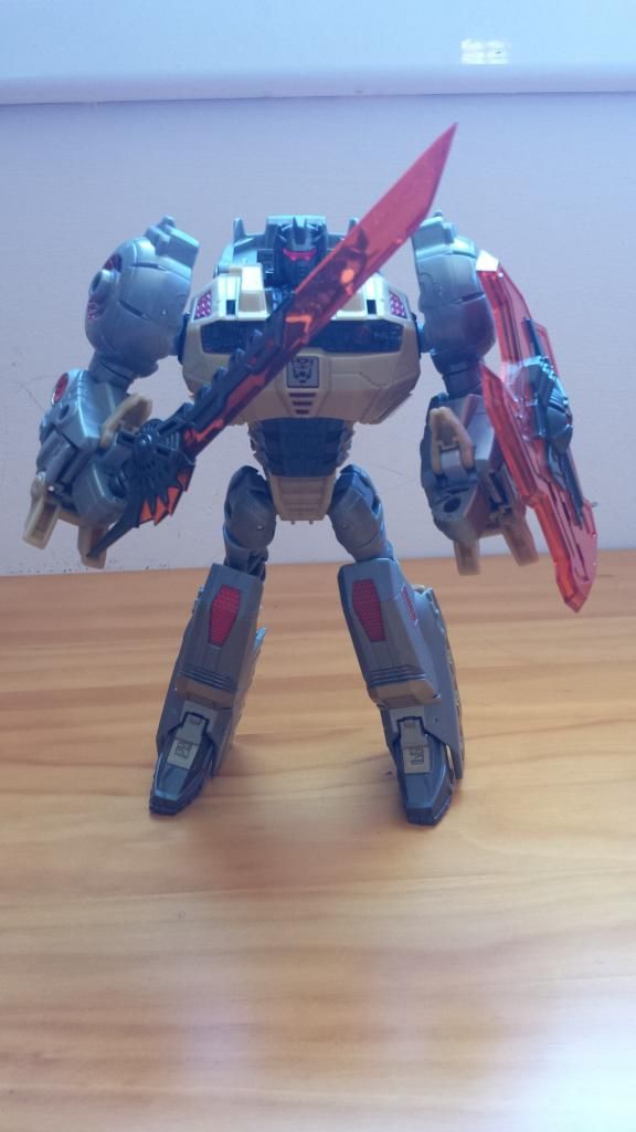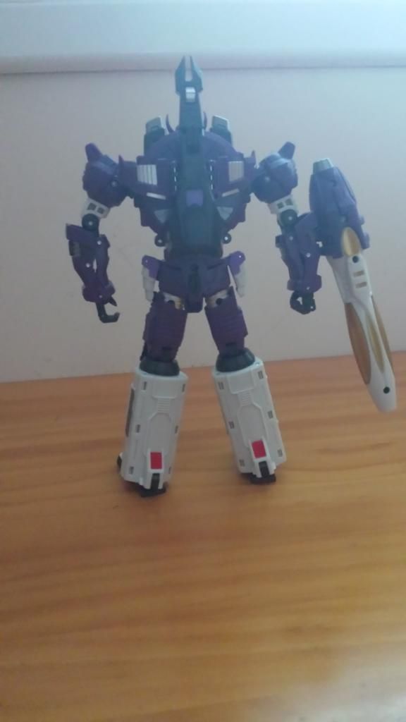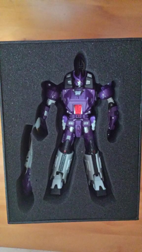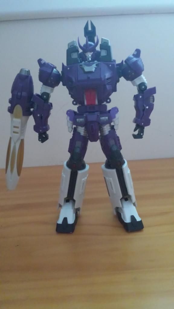 (Es una lastima de no disponer para la foto del kit de coronación de Starscream, jeje) TRANSFORMACIÓN No es excesivamente complicada, está al mismo nivel que cualquier deluxe-voyager , quizás la parte más complicada es el ajuste de las piernas , y el juego de pies. Siguiendo las instrucciones puedes transformarlo bien CONCLUSIONES En mi opinión es un must have para la colección classics. PROS: Al igual que el Megatron de Toyworld, este Galvatron es la representación más fiel al personaje G1, tanto en modo bot como en alterno. También hay que destacar la calidad de los materiales. CONTRAS:poca articulación en los hombros (por temas de transformación) y el precio ( Todas las terceras compañías pecan de eso) NOTA: 9'5 ![]()