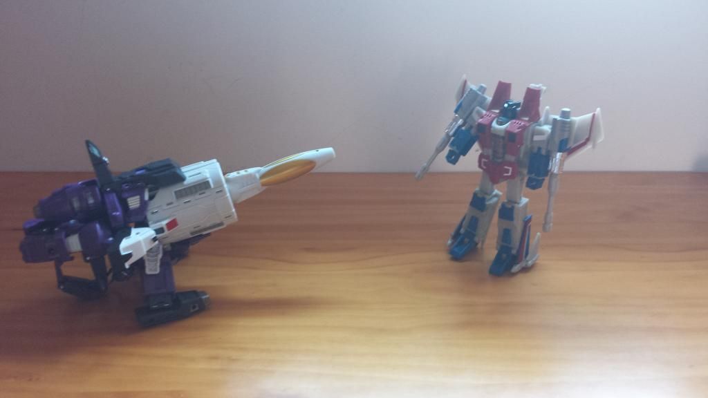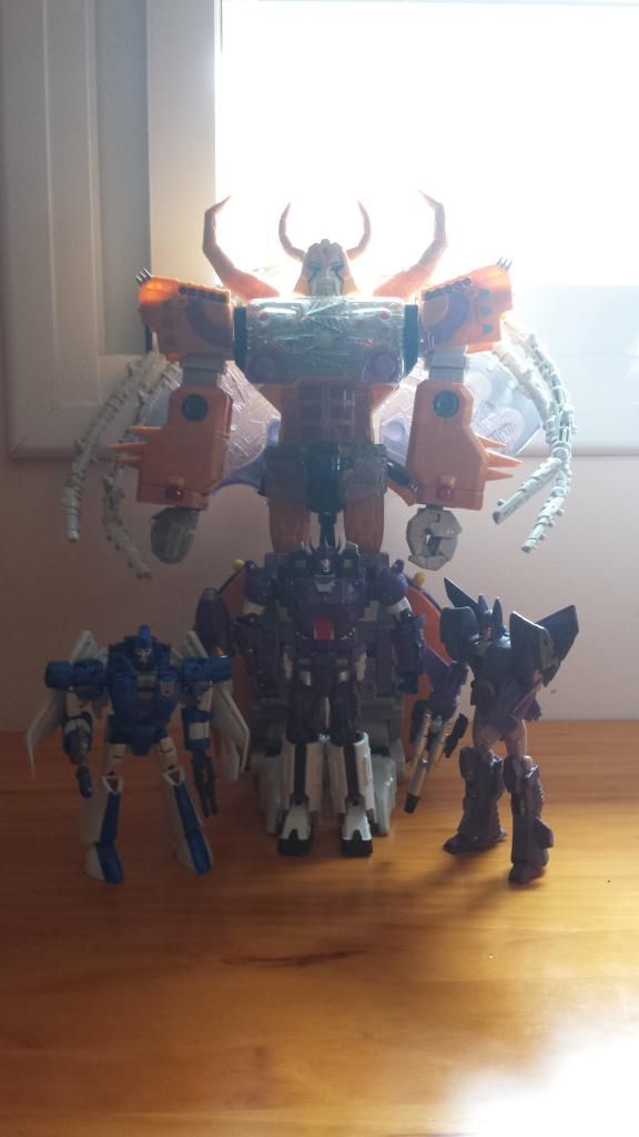 Queda estupendo en escala con los Classics que representan a los otros dos heraldos principales de Unicron: Cyclonus y Scourge.
