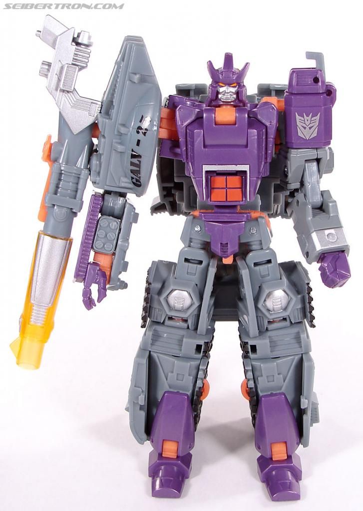ANTECEDENTES El personaje de Galvatron, ya tuvo su figura en 1986, que tenia como modo alterno se convertía en cañón, y también podía adoptar una forma de pistola futurista( ¿en recuerdo a la antigua identidad del personaje Megatron?). De esta hay un repintado de color más fiel al cartoon, muy cotizada.