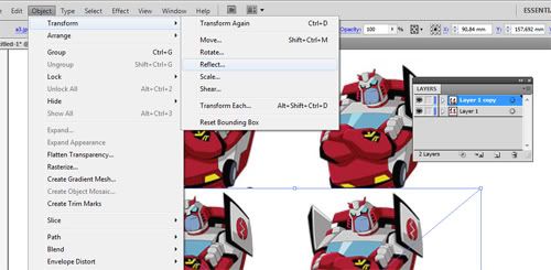 Luego reflejas la capa duplicada en objeto/ transformar/ reflejo (seleccionado horizontal 0°) quedando la imagen invertida.