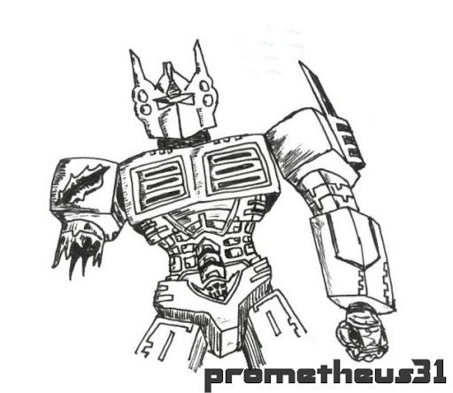 De5tructor Powermaster Autobot / Decepticon  | #147• ¡Ahoy, foreros! Acá llego y aparezco con otro boceto cómodamente ubicado en un enlace que pueden picar con el puntero de la rata para que le echen un ojo más de cerca, se trata de una escena de un fanfic no escrito, la cual pensé desde hace un tiempo tras ver RoTF y Shattered Glass, de hecho la escena es algo así como un homenaje a cierta parte de RoTF, así que podrán ver el parecido de inmediato, heh  Tomando en cuenta las fuentes que tuve para inspirarme para hacer esto, pues está fácil de entender. Venga y dispare su opinión.