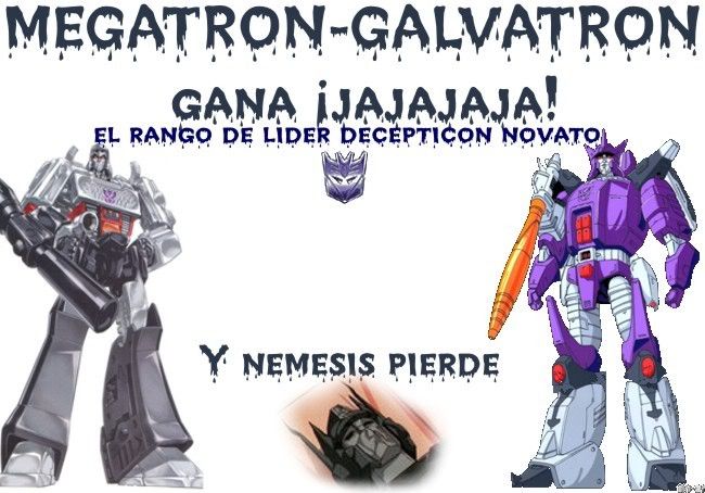 Megatron-Galvatron Targetmaster Autobot / Decepticon | #1•• Bueno señoras y señores aqui les presento el tema en el que muestro mi victoria en el desafio que hace tiempo nemesis_convoy me reto para decidir quien tendria el rango de lider decepticon de los novatos , ganando yo , con este tema llego al 666 que era la marca establecida para ganar el desafio : La verdad no fue un reto para mi el gran megatron-galvatron , te derrote nemesis ni siquiera te me acercaste a mi , ahora tendras que bailar dare to be stupid en la seccion freakadas y sin coraza de piernas