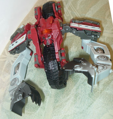 Eso sí ese gigante en modo robot es un monociclo horrible, parece que los diseñadores estaban faltos de creatividad o Hasbro quiere vender triciclos con su forma para los pequeños. Menos mal que su tamaño de enorme lo hace ver IMPRESIONANTE, y su gusto por la destrucción de la cibilización humana lo hace más atractivo aún como personaje je, je. PD:Espero que Devastator tenga piernas