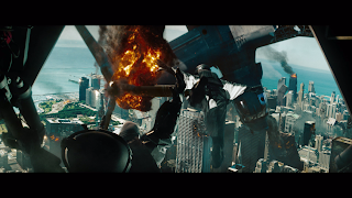 mdverde Alto Consejo Cybertroniano | #80• Realicé algunas capturas de las escenas más importantes para mí del Trailer de Transformers: Dark of the Moon para hacer algún análisis. Cada captura es de alta definición, mide 1074 x 604 pixeles y la pueden ver en tamaño completo haciéndo clic sobre ella. Sam va observando la destrucción desde un carro. Soldados saltan de un avión en paracaídas, mientras cae un helicóptero V-22 Osprey destruido. Al fondo la ciudad destruida. Ironhide choca de frente con dos de los robots con Dreads y todos sufren daños. Antes de caer se transforman. Bumblebee parece que se lamenta y arriba se acerca una enorme nave. Invasión masiva a la ciudad y destrucción. Naves extrañas, supongo que Decepticons, disparan contra los edificios. Un Transformers con algo parecido a tentáculos sale de la tierra y destruye todo a su paso. Un Transformer con apariencia de ave o dragón aterriza. ¿Será Laserbeak? Sam y Epps en el suelo y Optimus Prime al fondo. Rosie Huntington-Whiteley, parece que con extra Botox en los labios, mira atentamente algo que desconocemos mientras un carro se destruye en el fondo. Batalla épica en la ciudad donde se puede reconocer a Skids, Bumblebee, Optimus con su arma MechTech que le permite volar, Brawl en colores café, como la figura Deep Desert Brawl y otros. Prime aterriza, y ataca a Brawl. Prime ataca a Long Haul. Luego, se va desprendiendo de su Mech Tech y sigue atacando con las espadas de Energón. Aquí parece que ataca a Sideways o a un robot muy parecido (¿quién dijo repintado?). Optimus ataca a un Transformer desconocido. Prime se prepara para atacar con sus espadas a otro robot que no se distingue quién es. Si logran detectar detalles o robots que se me escapan me avisan. Definitivamente que el trailer está genial, super intenso y explosivo. Esperemos que la película sea así de buena. |