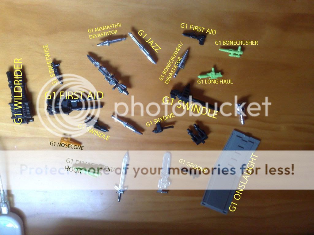 User 4275522 Actionmaster Autobot / Decepticon ![]() | #28• Subidos los accesorios identificados de rose, los no identificados ni idea de lo que son, aunque las espadas estoy casi convencido de que no son de Transformers... Por cierto, esto va creciendo... quito los de Smokescreen también. |