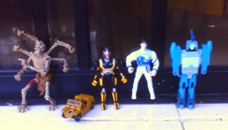 La mayoría no son Transformers...pero que mas da xD. - Aracula de Skeleton Warriors; por suerte solo le faltan lo accesorios (lease armadura). - G1 Swindle; accesorios también aunque eso es lo de menos. - Robo Rider. - Tsunami de WMAC Masters; esta figura si me sorprendió verla, no sabia que habían juguetes de esa serie... - G1 Burr; aunque no se note, le faltan ambas piezas que cubren las manos en modo vehículo, y naturalmente también le falta el escudo. ![]()