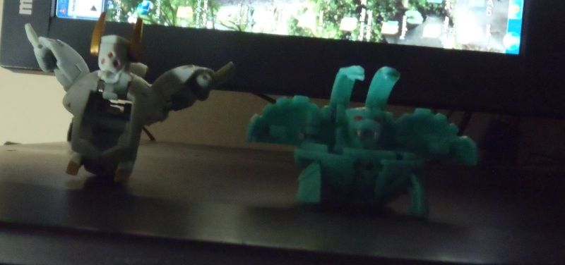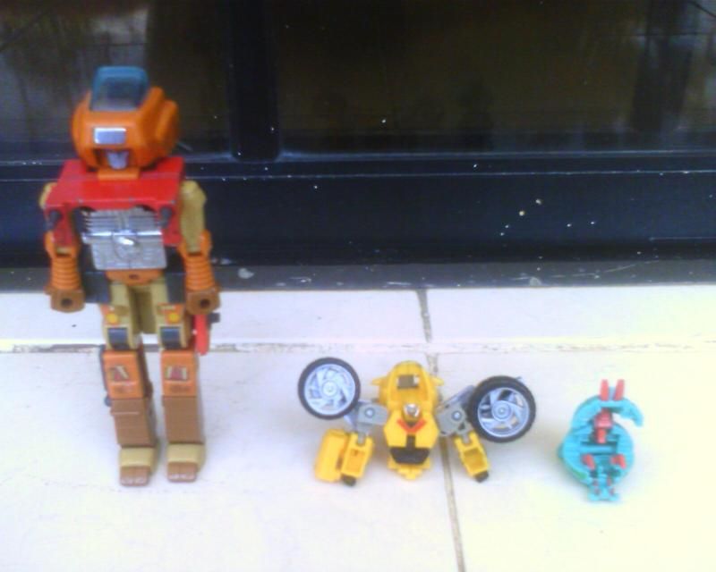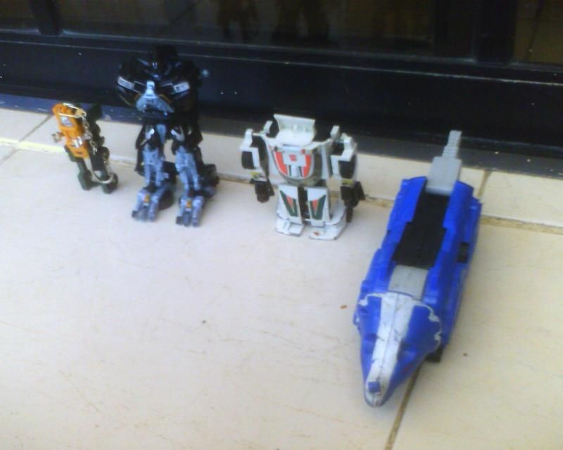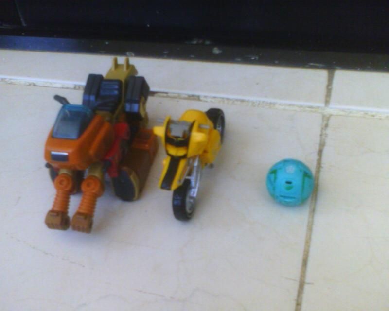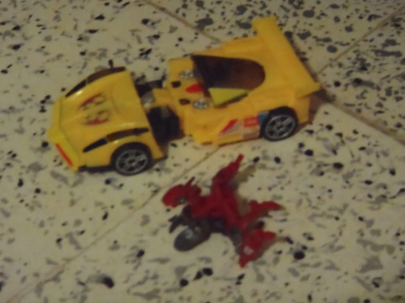- G1 Wreck-Gar, a este solo le faltan los accesorios y uno que otro sticker. - KO G2 Road Rocket, aparte de los cristales de la moto, le falta todo de la cintura para abajo. - Random Ventus Bakugan, no se que modelo es, y honestamente no me importa xDDDD. ![]()