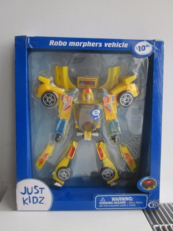 También conseguí un Cyber Bakugan, pero no tengo idea de cual es. EDIT: Finalmente logré averiguar de donde es el robot amarillo, es de los Robo Morphers Vechile de Just Kidz, unos robots KO vendidos en Kmart. Como pueden ver, lo tenía transformado de manera horrorosa debido a que no encontraba como posicionar los brazos (que en realidad eran los antebrazos). Otra cosa es que el parabrisas al parecer es un escudo o va enganchado en la espalda...