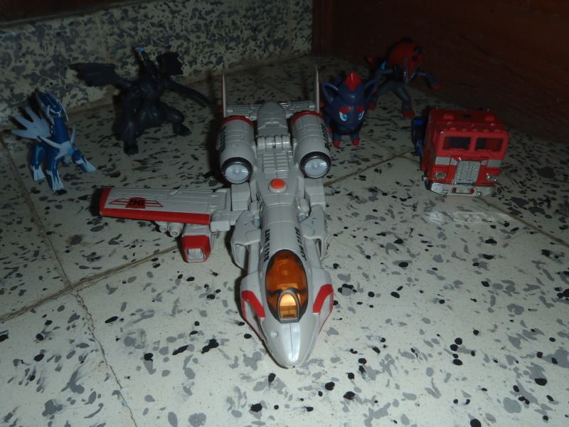 - Figuras de Pokemon: Dialga, Zekrom, Zoroark y Zorua. - Classics Powerglide; a este solo le falta el brazo derecho. - G1 Optimus; le faltan los puños. Ahora bien en cuanto a este Optimus, no se si sera un KO o que, ya que esta bien logrado, pero el plástico de los brazos se siente raro y no veo ningún sello de Hasbro/Takara por ninguna parte, ni la fecha ni nada :S.