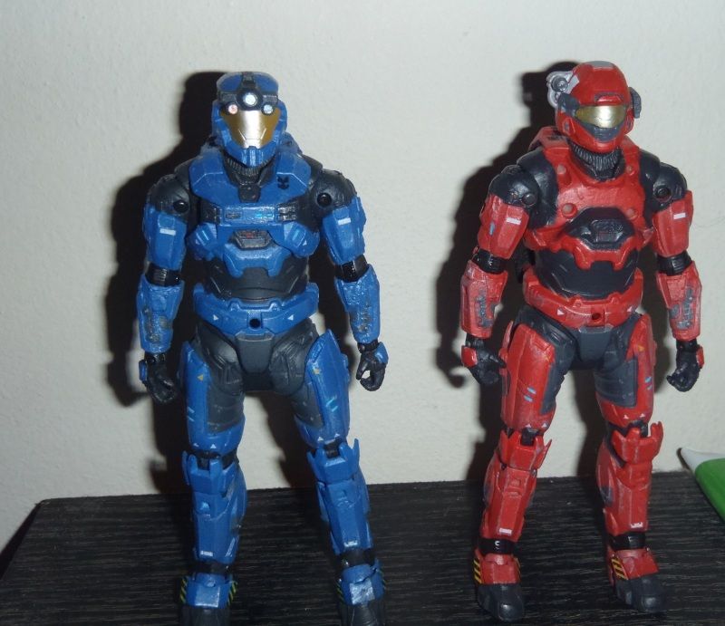 Según tengo entendido (gracias a mi traficante clandestino de figuras que tengo en el foro) estas figuras son de Halo, no tengo idea porque nunca he jugado Halo xD. La razón principal por la cual las compre es porque se ven cool y están bien articuladas. En cuanto a que le falta...pues aparentemente muchas cosas ya que veo que ambas figuras están repletas de ranuras para conectar cosas, por lo menos estoy seguro que al rojo le falta la pechera... ![]()