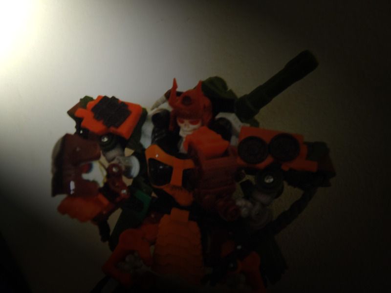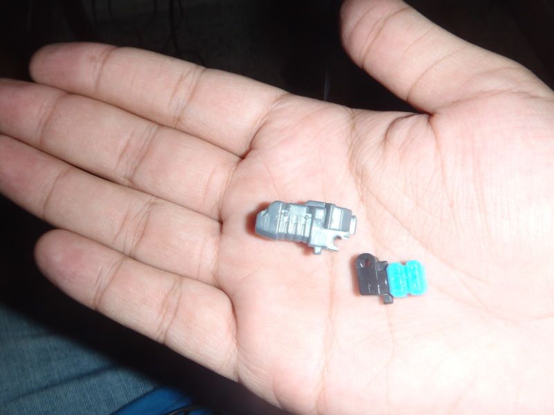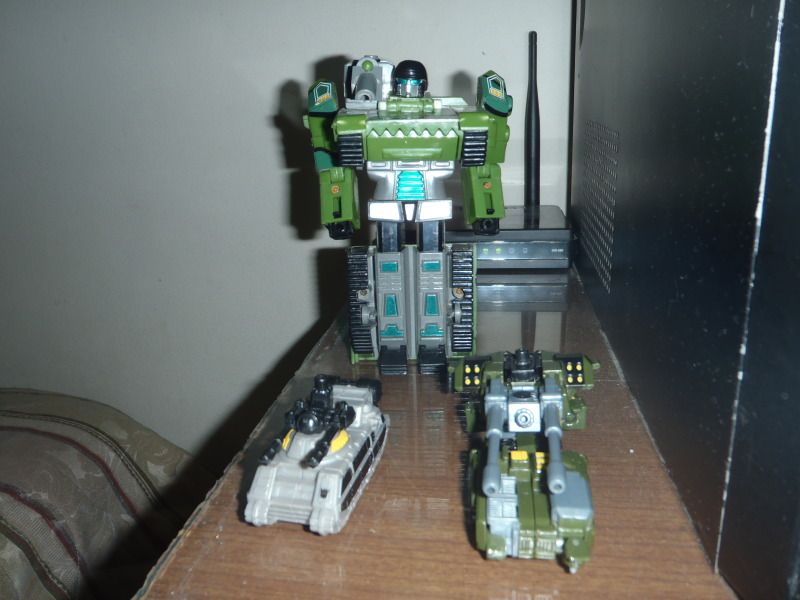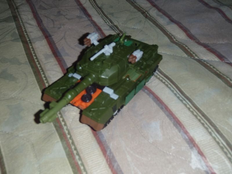 O algún otro tipo de super pegamento que se le parezca.... El punto es que no se si fue el mismo dueño o cuando llego a Haití, pero le rompieron todos los puertos y malograron las piernas y brazos al arrancarle los otros vehículos. De hecho la mano de Bombshock aun estaba pegada al tanque cuando lo vi, termino de romperse cuando intente sacarla. El que me vende los Transformers decidió regalármelo porque se dio cuenta que no valía la pena pedir dinero por el. Y como era gratis me lo quede...