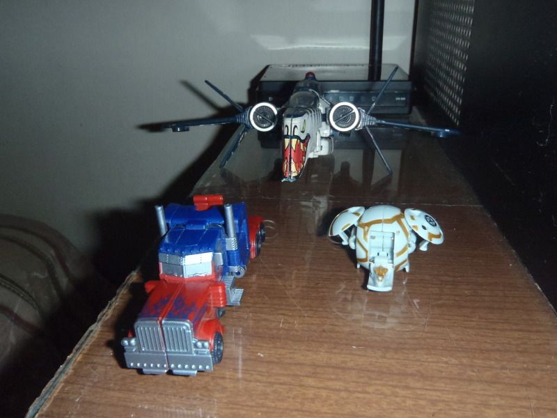 - Crossover Arc-170 Starfighter. Solo le faltan las armas. - DOTM Cyberverse Optimus Prime. Le falta el jetpack. - Random Bakugan.... ![]()