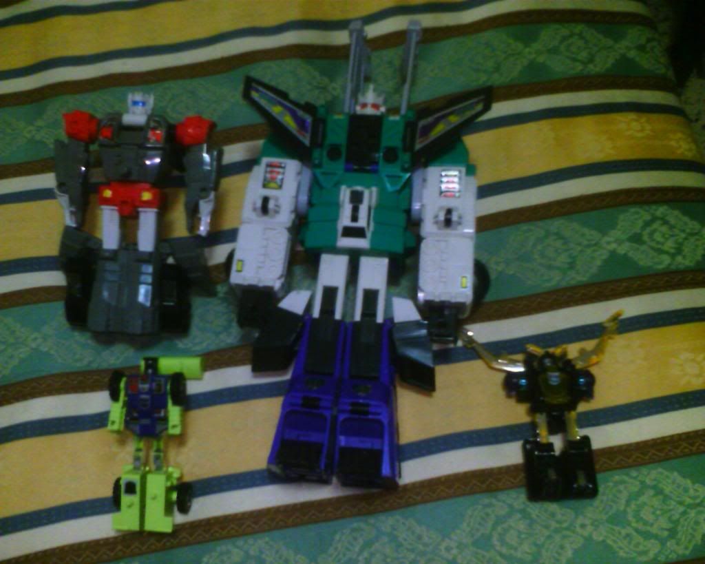 -G1 Doublecross. Este amiguito esta completo, aparte de algunos stickers y esas pequeñeses esta full, lo único lamentable es que el mecanismo que emite las chispas esta muy oxidado y casi no funciona. -G1 Scrapper. Aparte de los accesorios y el techo de la excavadora, esta completo. -G1 Sixshot. Solo le faltan los accesorios y algunos stickers. -G1 Sharpnel. Tiene los brazos rotos de los hombros para abajo... ![]()