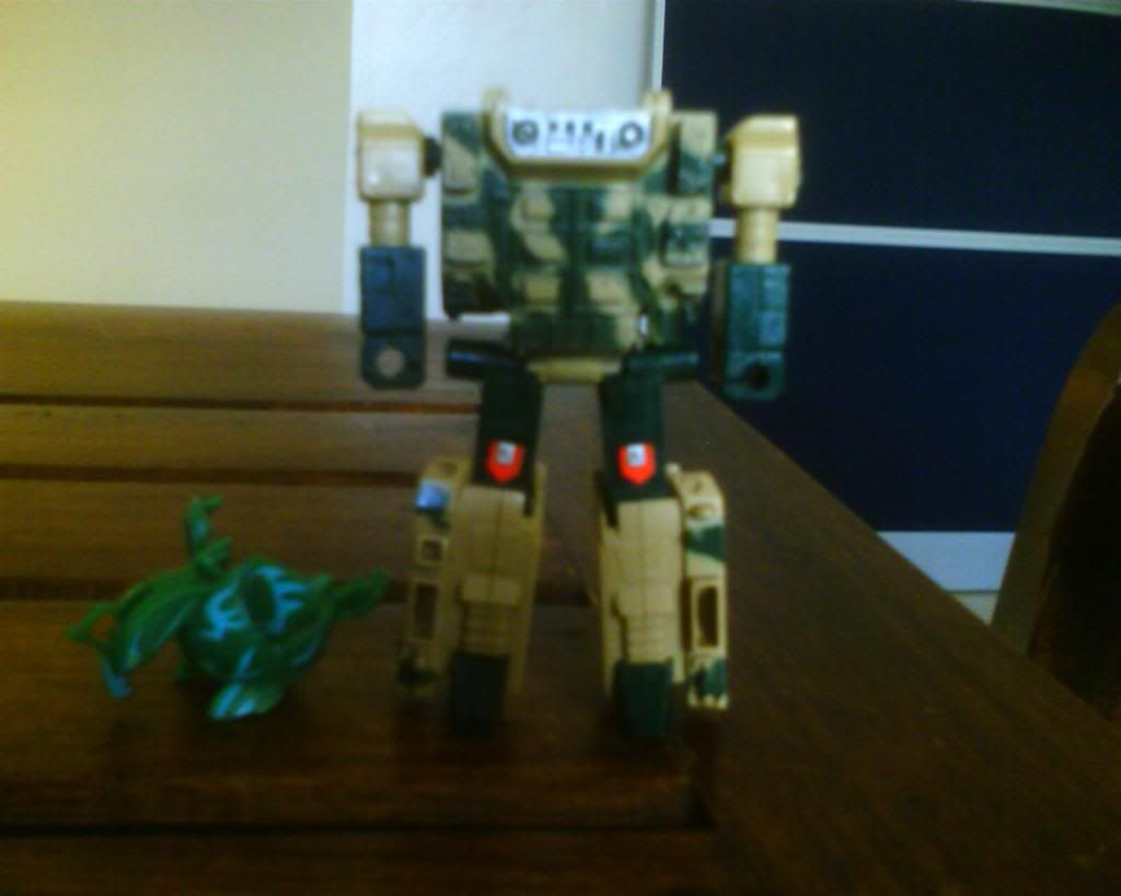 Bueno, si pero no... Hoy conseguí la versión japonesa de Go-Bots Defendor, llamado Saradin MKII (según lo que dice la marca en la pierna). Lamentablemente le falta la torreta, la cual guardaba la cabeza en su interior, por lo tanto tampoco tiene cabeza, ademas de que le falta un neumático (lo cual poco importa). Aparte de esto conseguí un Ventus Skyress de Bakugan, pero ya eso es de menor importancia xD. ![]()