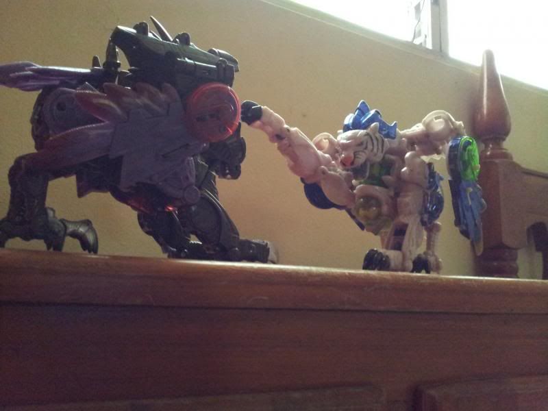 - Lion de los Fighting Animals de V World. Lo único que le falta (aparte de los accesorios) es la parte delantera de la pata izquierda que estaba en un balljoint. Ahora puedo juntarlo con los Fighting Insects que tengo en caja. - DOTM DX Sideswipe. Este aparte de las armas esta completo...si, COMPLETO xD. ![]()