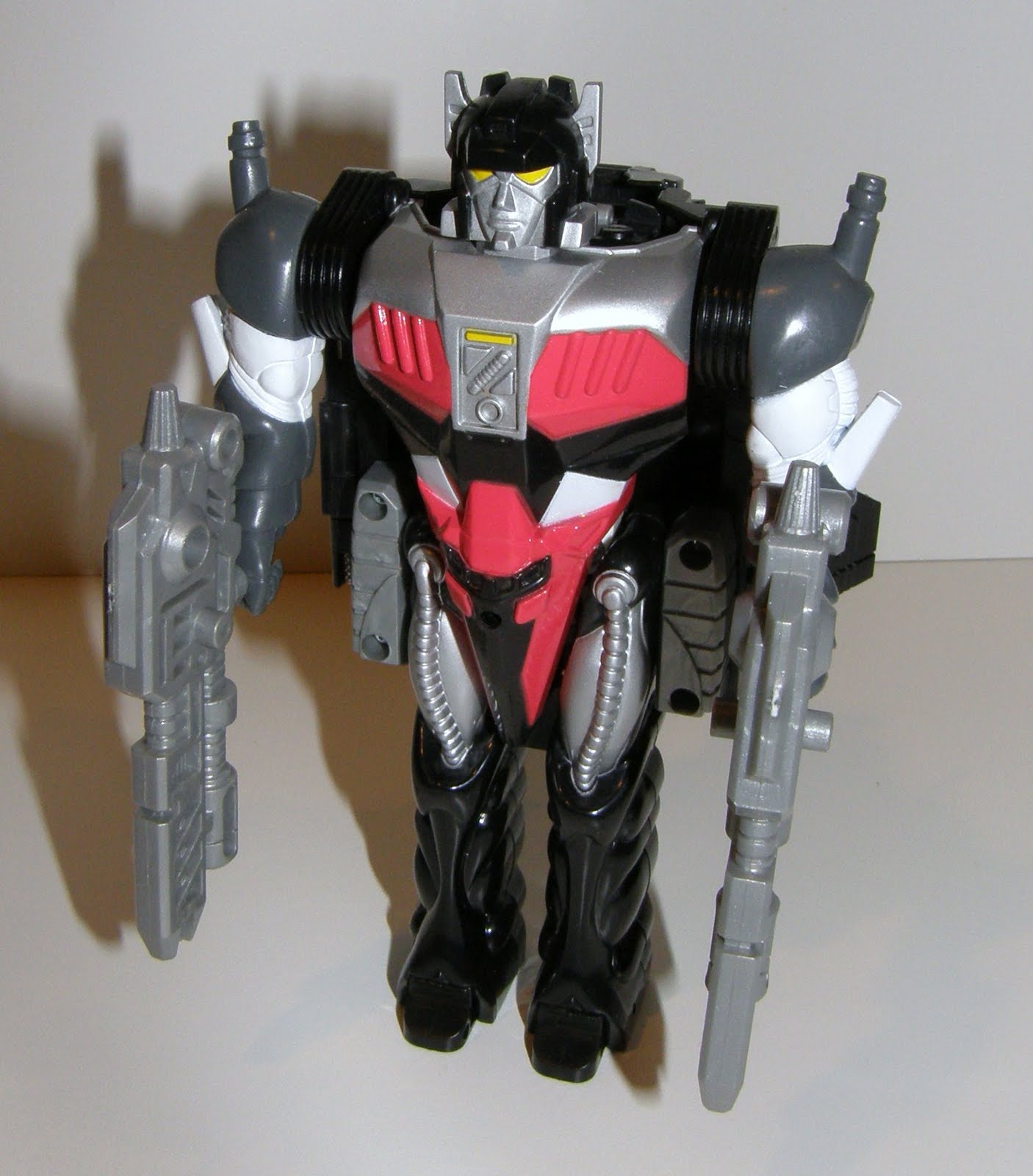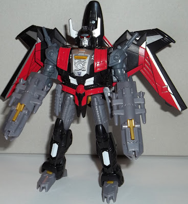 Pero es que al el modo robot es excelente, a parte de que anatomicamente es de lo mejorcito que han hecho en los ultimos tiempos, aun siendo un avion se sale del todo del estereotipo seeker, mil veces repetido. Si comparamos con su version de animacion por alla los 85, el parecido es practicamente perfecto y la verdad, no se si haran un modelo Henkei, pero se me antoja poco mejorable, mas alla de lo que pueden ser cromados y pequeñas variaciones de color, alla donde es gris, que sea blanco por ejemplo, pero todo es perfecto, la cara mola un huevo y parte del otro.
