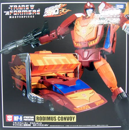 9: Cobra Sniper de Sideshow. Poco se puede decir de esta fgura que no hayamos visto ya, si fuera otro personaje sin duda estara en una posicion mas baja, debido a la enorme calidad que destella por todos sitios, es un soldado, uno mas de los que Sideshow ya ha sacado de esta coleccion, pero la gama de colores lo convierte en el mas realista, sinestro y creible. Detalles por todos sitios y aunque con pocos complementos, los justos y necesarios, para lo que es, quien es y sobretodo la labor que desempeña, como el resto de cosas de este post, es un 10 y una figura que a poco que la gente pudiera, deberia tener en su coleccion. Bueno, como el resto de esta gente, pero vaya, este ha caido este año, y de eso se trata. 8: Rodimus Prime Masterpiece. Claro, el esperado lider Autobot como seguramente nunca se ha visto y difclmente se vera. Lastima, porque pese a ser una figura notable, a poco que hubiera corregido los pequeños defectos que tiene, podria estar tranquilamente mas abajo. Conserva la esencia y calidad de la gama Masterpiece, pero o bien la crisis, las prisas o la direccion de empresa, no tengo claro que, ni el orden, parece haberle jugado una mala pasada a una figura que quizas merecia estar mejor, falta hierro, articulaciones feas, y algun detalle no muy bien acabado, pero como no iba a estar en la lista de "Mejores del 2011" ?!?!? Su version yanqui tamben podriamos colocarla en la lista, pero he optado por destacar la nipona sobretodo por ser la primera llevar el trailer etc, aunque.. si claro, el USA version lleva el targetmaster, y ademas esta muy currado.