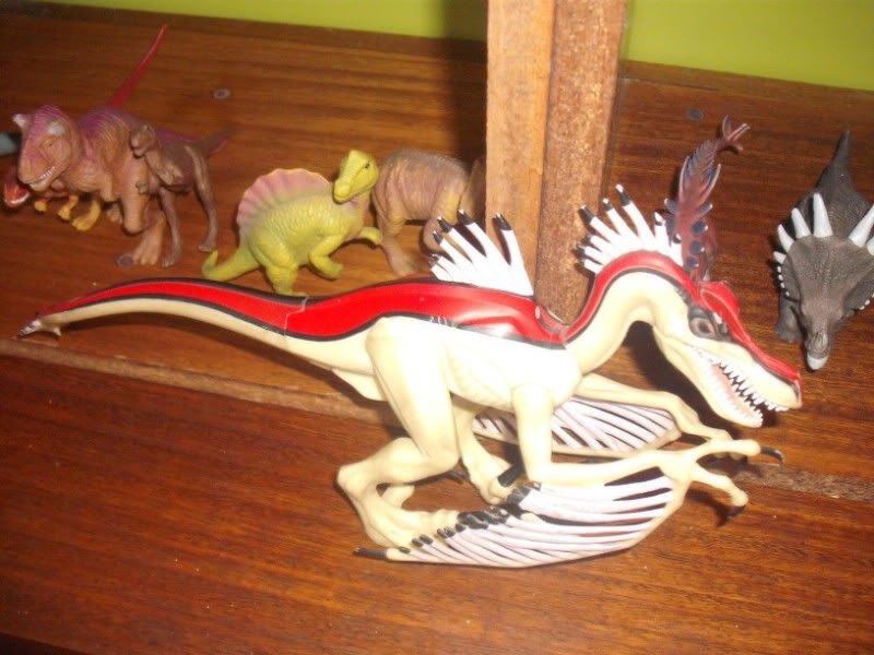 Y una bizarrería de los juguetes de Jurassic Park: La línea Chaos Effect presentaba mezclas genéticas, mutantes, lo que sean de varias especies. Este es un Velocirapteryx, mezcla de Velociraptor y Archaeopteryx