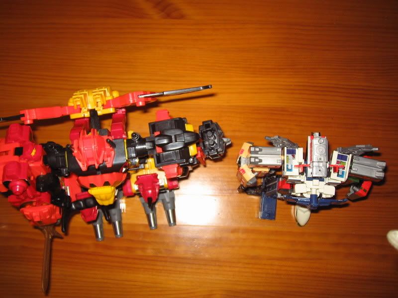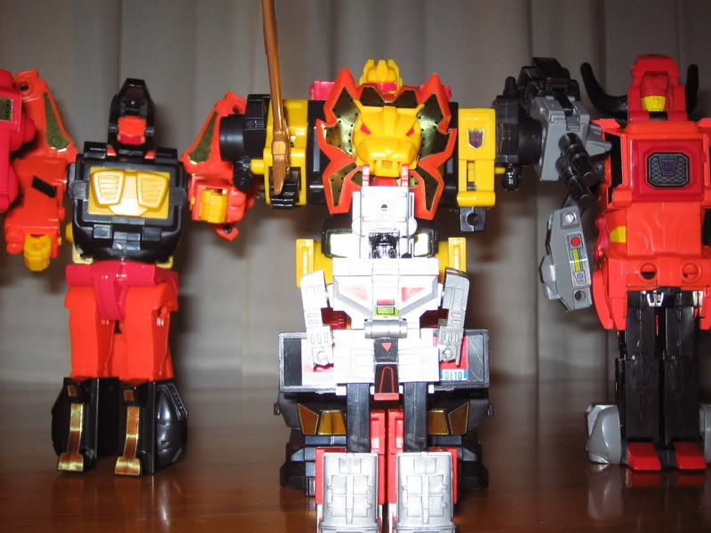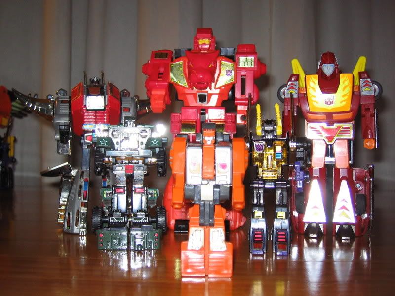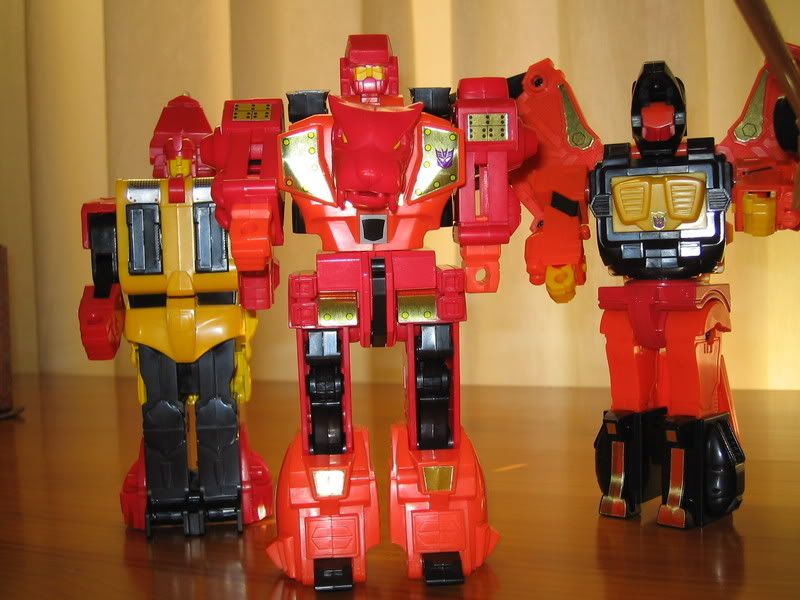 ULTRA-MAGNUS Targetmaster Autobot / Decepticon | #1• Bueno, pues por fin tengo las fotos de algo mas de mi coleccion, como mas de uno de este foro presentes puede tener en su poder estas figuras pues me mola hacerlo tipo comparativa poniendolos al lado y esas cosas, tipo seibertron.com o similares, ya cuando tenga espacio para poder ponerlos o si soy propietario de una casa donde puede consacrar una habitacion para esto sera otra cosa y un sueño cumplido, de momento lo tengo todo guardado cada cosa en su caja y a su vez estas guardadas en un armario donde ya me he quedado sin sitio, otros estan peor asi que pa que nos vamos a quejar, sin vamo a estar igual o peor si lo hacemos.Os queria presentar a mi Predaking que me llego recientemente, ya les puse a los cincos bichos su pegatinas y estaban listos pa sesion fotografica. ![]() ![]() ![]()