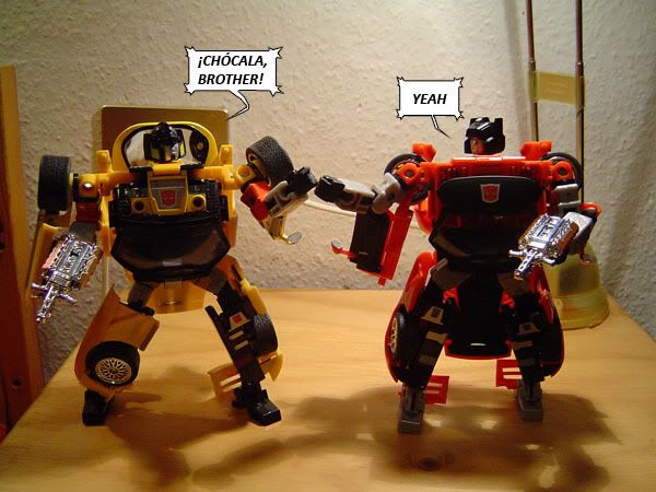 De casualidad los pude adquirir a la vez y llegaron juntitos como buenos hermanos. Con Sunstreaker me esperaba más de lo mismo, pero el repintado, la cabeza con más personalidad, el pecho mejorado y el añadido del techo del coche (que sirve para tapar el peor hueco de sideswipe) mejoran la figura una barbaridad. Además, en modo Viper es precioso. Éste es uno de los casos en los que el pintado de la figura me gustaba más en Alternator que en Binaltech. Bueno, sea como sea, estoy muy contento con la compra, porque estos 2 personajes siempre me han encantado.