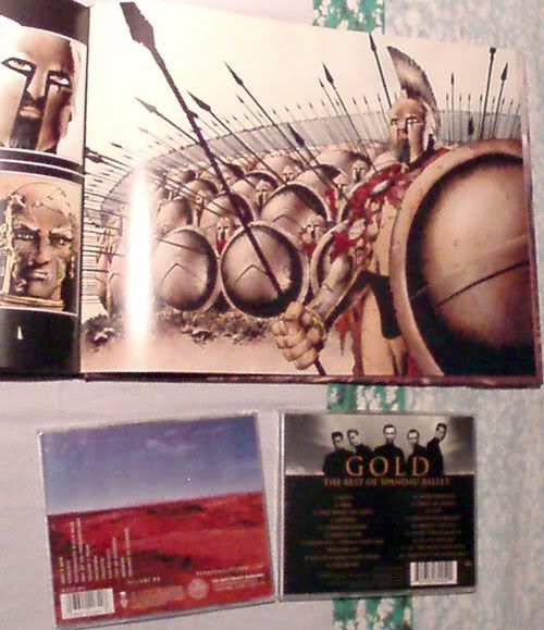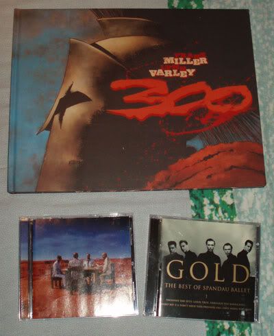 Sip, la edición gringa de 300, pasta dura y tal... difiere de la española en que la pasta es mate en lugar de satinada... lo prefiero porque no se marcan tanto los dedos xD bueno y el Black Holes & Revelations de Muse... y el de éxitos de Spandau Ballet (cuyo famosísimo single "Gold" ha sido recientemente parodiado para el anuncio de Cocacola y tal).