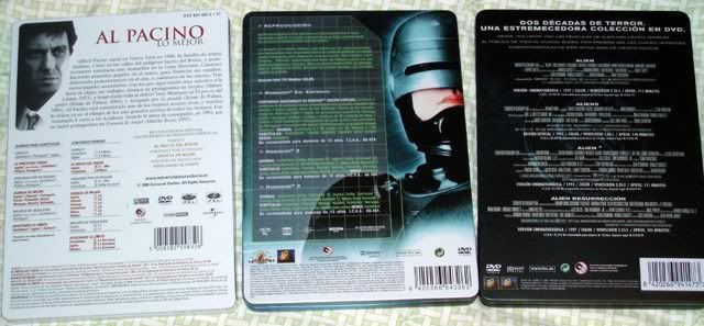 Trilogía de Robocop por 18 euros y "Quadrilogy" de Alien por 21 me parecen buenas compras también. No había visto ni una de Alien hasta ahora (lo sé, imperdonable) y anteanoche vi la 1 y aluciné por completo (sobre todo teniendo en cuenta que tiene ya 30 años esa peli). En fin, 3 preciosas cajitas metálicas para mi haber... y pronto más |