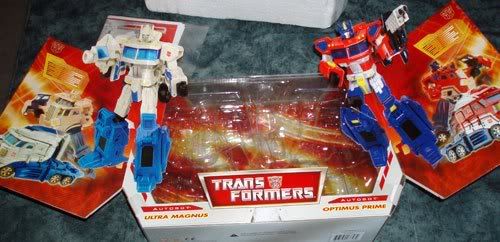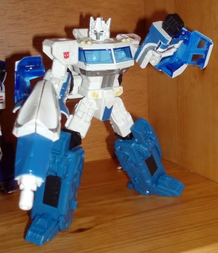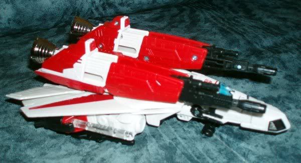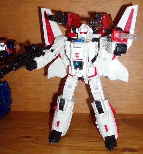 Tamaño voyager, claro. Este y Optimus son los únicos que tengo en versión Hasbro, ya que encontré un jugoso pack especial que en vez de traer a Skywarp traía a Optimus y claro, uno no puede resistirse... (aunque sólo sea porque, por ahora, no hay decepticons en esta línea que me seduzcan lo suficiente... sólo muchos avioncitos