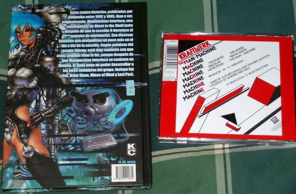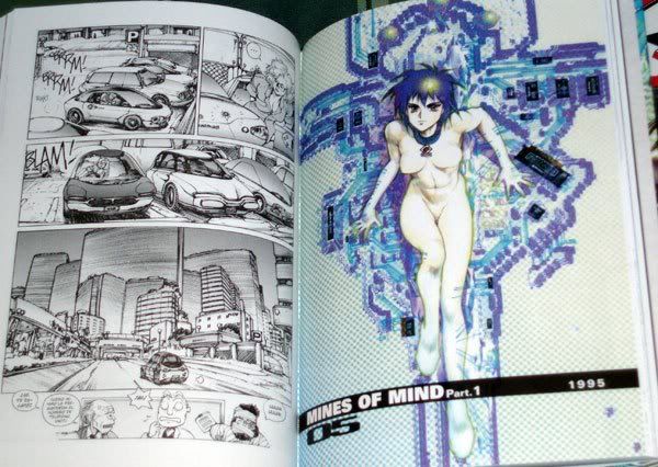 Y sí, la otra chuche es un pequeño tomo recopilatorio, en pasta dura y respetando tanto las notas al pie del autor como las páginas en color, de las historias cortas de Ghost in the Shell que seguían inéditas hasta la fecha!! Una pequeña joya que no podía dejar pasar un fan de GITS como yo. Tras derrotar al malo (o más bien fusionarse con él) al final de la primera película, Motoko desaparece y se convierte en una especie de "reina todopoderosa de las redes"... y de eso va el segundo manga, Man-Machine Interface (una auténtica obra de arte), pero ¿qué pasó con el resto de la Sección 9?