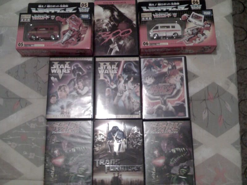 Estas han sido mis adquisiciones por Navidad, los muñecos son autoregalados y las peliculas obsequio de familiares y amigos. por suerte hay un par de empresas que estan trayendo peliculas originales para LatinaAmerica con un valor adsequible, por Ejemplo la pelicula de los transformers como apreciaran todo es igualito pero las cajas y letratitas estan en español, el precio es de risa mi ex me la compro a 13 dolares cuando traerla me iba a costar mas de 40 , las de starswars solo me pudieron conseguir la IV y la V Edicion limitada, lo interesante de esta version es que trae dos discos una con la pelicula remasterizada y el otro disco contiene el demo de starwars lego, un trailer del juego y la primera version de la pelicula , tambien a un precio de risa, 300 tambien la consegui en original, ojala ademas de peliculas se animen a traer las series como beastMachines, de ahi me regalaron las series de Beast Wars la segunda temporada y Gaiking la nueva serie con los ñiñatos jejejejejejej, pero lastimosamente estas no son originales, pero a caballo regalado no se le mira el diente.Aqui un par de Transformers teh movie Bumblebee concep camaro08 para mi es uno de los mejores transformers en la linea deluxe que han salido y el mas fiel al modelo 3d, megatron voyager gana mas a mi concepto que el leader por eso me hice de este. ![]()