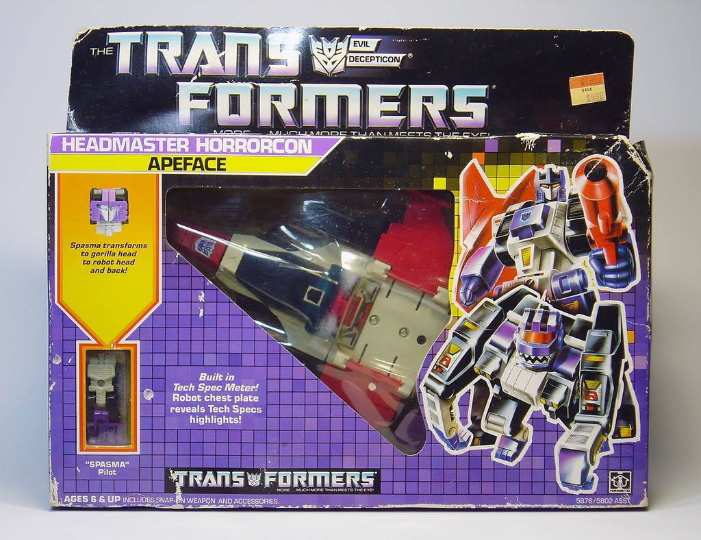 Transmutante Headmaster Autobot / Decepticon | #89•• Muy buenas....!!! Bien....como reza el dicho....al mal tiempo buena cara..... Asi que en tiempo de crisis estoy aumentando mi nivel de adquisiciones..... Pero antes de empezar quería comentar que el problemilla que tuve con Apeface resultó ser una falsa alarma.....y menos mal...no veas que alegría más grande me llevé.... Estaba tan rallado con ese tema que no podía irme a dormir sin comprobar con mis ojos como estaba de amarilla la figura....así que abrí la caja y nada mas tocar la burbuja de plástico...esta se desmenuza como una galleta.....pues resulta que todos los rallos de sol los absovió la burbuja protegiendo la figura.....y claro esta quedó amarillenta y sobre el blanco de la figura parecía que era la propia figura la que estaba amarilla.....cuando solo lo estaba la burbuja de plástico..... Me quedé muy sorprendido...tanto por lograr conseguir mi estimada figura en perfectísimo estado como tanto había soñado....como al comprobar lo bien que se hacían las cosas antes....que esa mierdecilla de plástico protegió de forma formidable la figura......increible....si señor.... Superado el estre mal trago...me dispongo a presentaros dos chuches curiosillas....