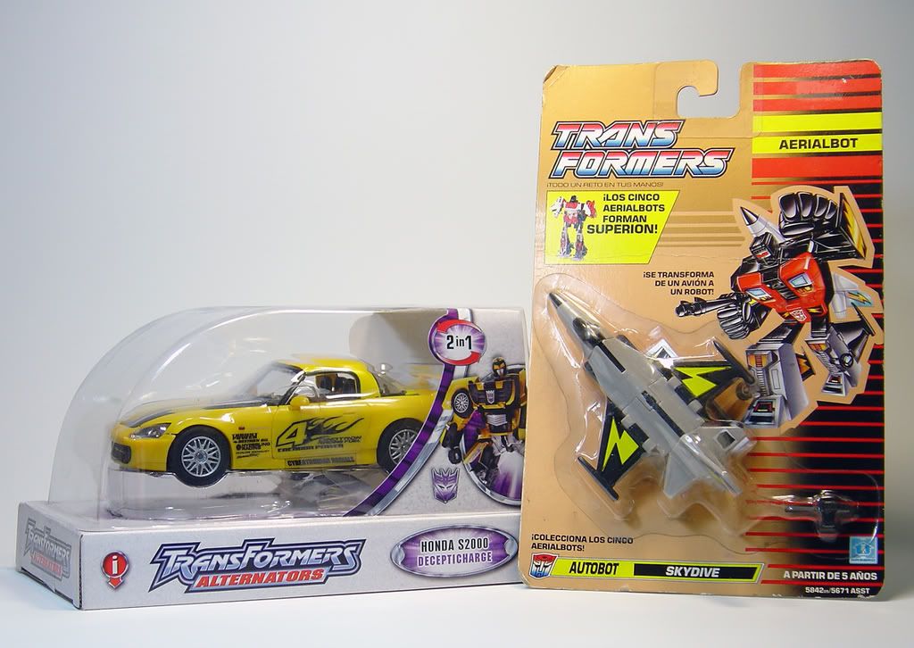 Bien....el altrenator....se viene a completar el mínimo de alternators que tenía en el punto de mira desde hace tiempo....y como es bien sabido esta pieza (el personage no el coche) solo se hizo en versión alternator....así que no hay opción a Binaltech....ya que de los que me quedan son Prowl....versión Binaltech...y Rambel.....que tampoco tiene versión Binaltech.... Y curiosamente hay un ilo en la sección de figuras que comenta lo caras que ponen algunas figuras ciertos aprovechados y especuladores....que si bien están en su derecho es algo que choca..... Bien pues este Skydive me costó unos 40 eurillos.....quizás un poco caro para ser un simple aerialbot....pero estuve buscando intensamente este personaje en este estado durante mucho tiempo y no lo encontraba....de hecho creo que este aerialmbot en concreto es muy escaso...o sencillamente tueve mala suerte....no se....el caso es que finalmente tengo completo a mi Superion.... Ahora solo rezo para que saquen un encor de devasteitor aprovechando el filón de la peli de TFROTF.....y ya tendría cubiertos los cinco primeros gestalts.... En fin...por ahora esto es todo.....espero que me llegen pronto las cositas de HLJ.....que no tienen desperdicio ninguno.... |