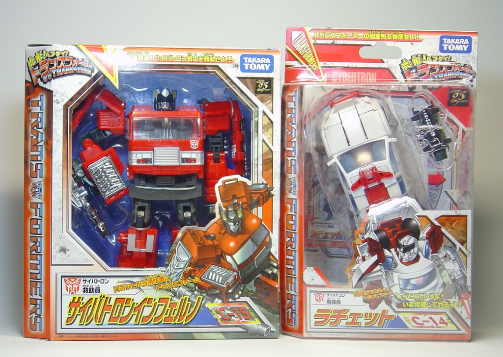 Pues aquí tenemos a nuestros Henkei del mes.....una espectacular versión de Inferno y un Ratchet muy notable....repintado...como debe ser, por otra parte....pero siempre me escama eso de pillarme tanto repintado con la tontería de ser fiel a la G1......
