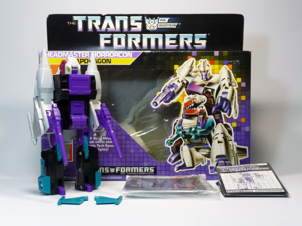 SÍIIIIIIIIII......por fin también yo tengo a Snapdragon.....ya que también a mi me encanta la pareja esta Horrorcons de la Headmaster como al compañero mikur24..... Venía con algunas piezas ralladas.....eso si estaba bastante limpio, aunque no todo lo que debería para ser una figura teóricamente seminueva y por ese precio.....y las articulaciones son muy solidadas....pero que no me ha molado pillarme una figura así fuera de la caja....por muy nueva que me dijeran que esta....no me ha molado mucho... Pero en fin...el caso es que ya la tengo y le he podido poner personalmente las pegatinas.....y que le tenía muchísimas ganas a este bicho….y no había manera de encontrarlo en unas condiciones semejantes por un precio que no fuese totalmente disparatado….