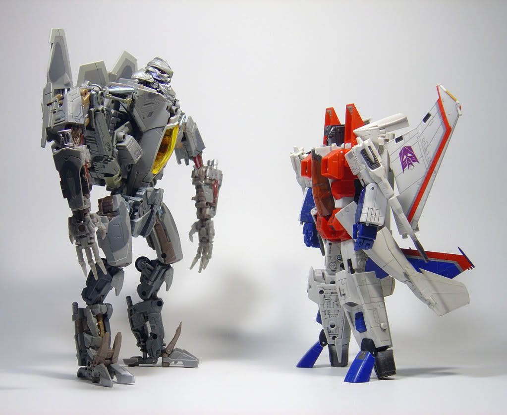 Transmutante Headmaster Autobot / Decepticon | #143• Hey .!!! Como siempre tardo un huevo en contestar así que mildisculpas señor mdverde Pues desmonte cuanto pude la figura y las piezas NO lassumergí precisamente por miedo a quesufrieran daños las pegatinas y demás No logre desmontar algunas piezas metálicas que fueron alfrasco pero no han parecen haberse dañado lo más mínimo en el proceso No obstante en un arrebato de paranoia logré desenganchar elsello de calor sin causarle daños y luego se lo volví a enganchar Tuve mucha suerte de poder tirar del sello con muchocuidado, por franquicia que forman la unión de las dos piezas que componen elbrazo Lástima que tenga que esperar al siguiente verano para podercontinuar experimentando con este tema Mientras hoy tenemos una de esas cosas que disfruto tantosacando fotillos de mis adorados robotejos Y resulta que ya hace un par de semanas me llego estepezqueñin Es una versión un tanto polémica esta Por una parte la figura en si esta muy pero que muy bien Pero por la otra el hecho de que le otorguen el grado de masterpiece es quizás desmedido Si esta mucho mejor acabada en cuanto a color y nivel dedetalle Pero es mucha pasta demasiada diferencia con la versión deHasbro La caja tiene su gracia pero en mi vida pagaría de más solamentepor una caja bonita Algunos piensan que la versión de Hasbro es más movieacurate pero eso solo es cierto si tenemos en cuenta la segunda película A mi lo que me hacia ilusión era tener un ovie acurate dela primera película el esquema de pintura es mucho más realista que en lasegunda no le veo la gracia al tema de los tatuses Tenía cierta ilusión por el cómic que incluía al principio supuseque al ser una figura Japo pues el cómic seria japo y a mi los cómics japos delos transformers me chiflan una barbaridad Mas tarde me enteré de que el cómic de marras lo dibujaba elGuidi de los cojones que quizás no se le den mal del todo hacer robotejos peroyo preferiría a casi cualquier otro dibujante japo El guión es de Furman pero eso no me sirve de mucho porqueesta en japo pero por lo que visto me da a mi que sigue estando un tanto desmotivadoel hombre y sencillamente cumple En fin Yo no soy mucho de hacer revius y ya me costo lo suyo sacartiempo para tirar estas pocas fotos y más para comentar Así que me planté una pequeña comparativa a modo decuriosidad El Masterpiece del Starscream original versión showacurate de Takara contra la versión Movie
