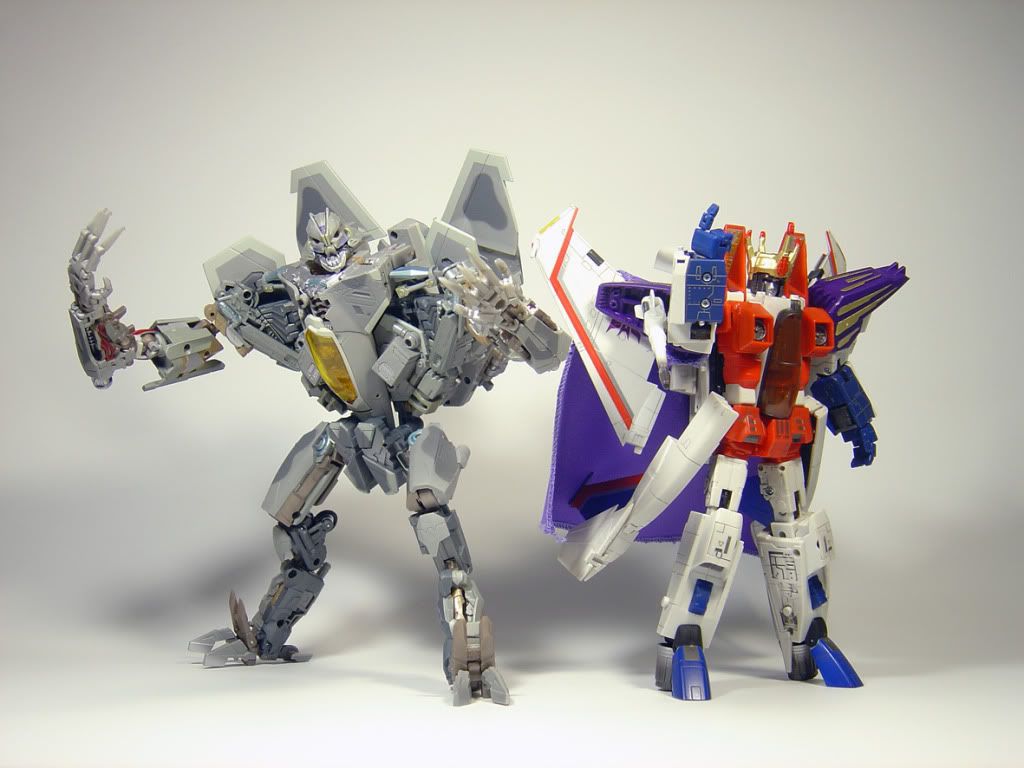 Bueno Sylv3r.....de nuevo mi más profundo agradecimiento por facilitarme el poder adquirir este par..... Molan bastante.....los dos.... Skyhammer....ya empieza a estar en un tamaño adecuado....y el bicho en si es guapisimo....no puedo decir mucho más.....teneis que pillaroslo....si queres disfrutar... Shockwave....muy bonico tambien....solo un par de cosas...... No me mola nada cuando condicionan los pies de las figuras para estar con las piernas separada....me pone un poco paranoico.... Y el modo robot esta muy guapo pero es como aplanado.....es decir...que de frente es anchote y corpulento....pero de lado esta to plano...sin volumen apenas....eso es un pelin engañoso.... No comentemos el modo alterno....que sencillamente cumple para que la figura se gane el derecho de ser llamada Transformer....y poco más... No comprendo como cuesta tatno crear modos cibertronianos decentes..... Como represetanción de Shocwave no puedo dejar de pensar el la versión de Sper Link o Energon para quiener lo prefieran....Ese si tenia un peazo cañonaco...y dios sabe que bien lo husaba en la serie de animación.... Son estilos distinos...y alos dos les falta algo para ser perfectos....pero mola.... Ojala sacaran un Lider de la peli...como se rumoreaba tiempo atras....