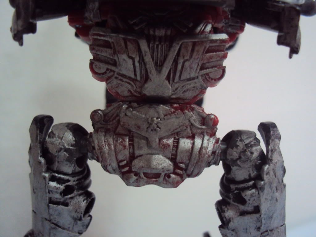 Aquí en modo robot. Como veis, tiene la pintura en muy mal estado. Si lo hubieras visto en persona cuando lo acabe de pintar era una cosa muy distinta. Lo que ha provocado esto es que le eche la pintura a la figura sin imprimación, y luego lo le eche ningún barniz ni cosas por el estilo que mantuvieran la pintura De momento, voy a intentar solucionar el problema de articulaciones flojas con esmalte de uñas aplicado en las bolas de los brazos: