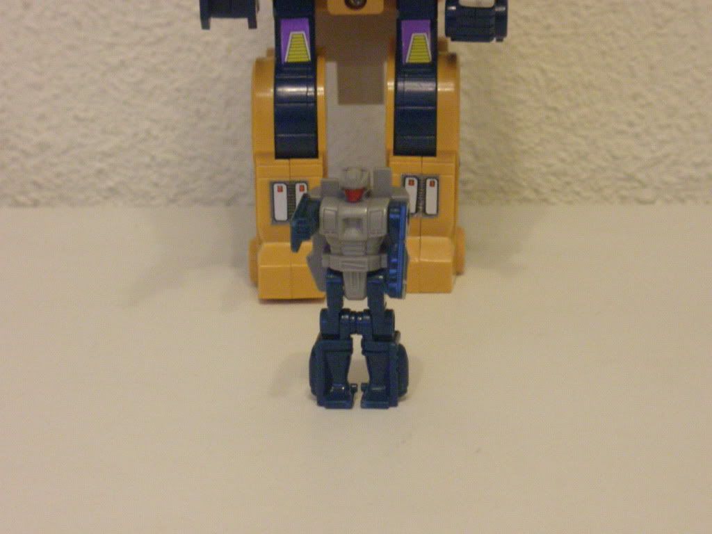 Aún siendo del grupo de los Headmasters grandes, es un poco mas bajito que el resto. Pero eso le da su encanto tambien, que como fueran todos cortados al milimetro con la misma altura perderian un poco de personalidad.
